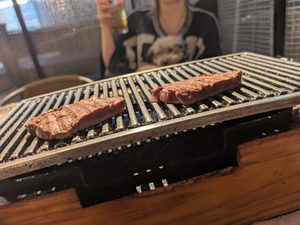 休日には、嫁と愛犬と一緒に焼肉屋へ行く。